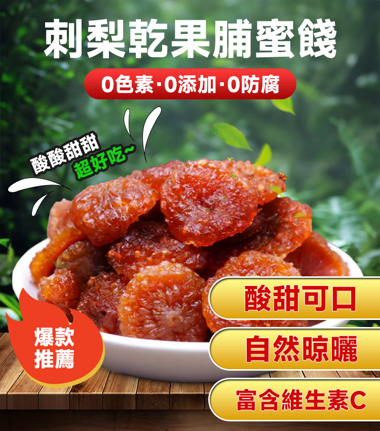 半小時前【健康美食-維C隻王刺梨乾果脯蜜餞】口感清香甘甜,老少皆宜,純乾果無添加,降血糖,清血脂,現特惠活動買的越多越優惠! - 【新鮮野生刺梨製作】三入組 NT$998 (300g刺梨乾)