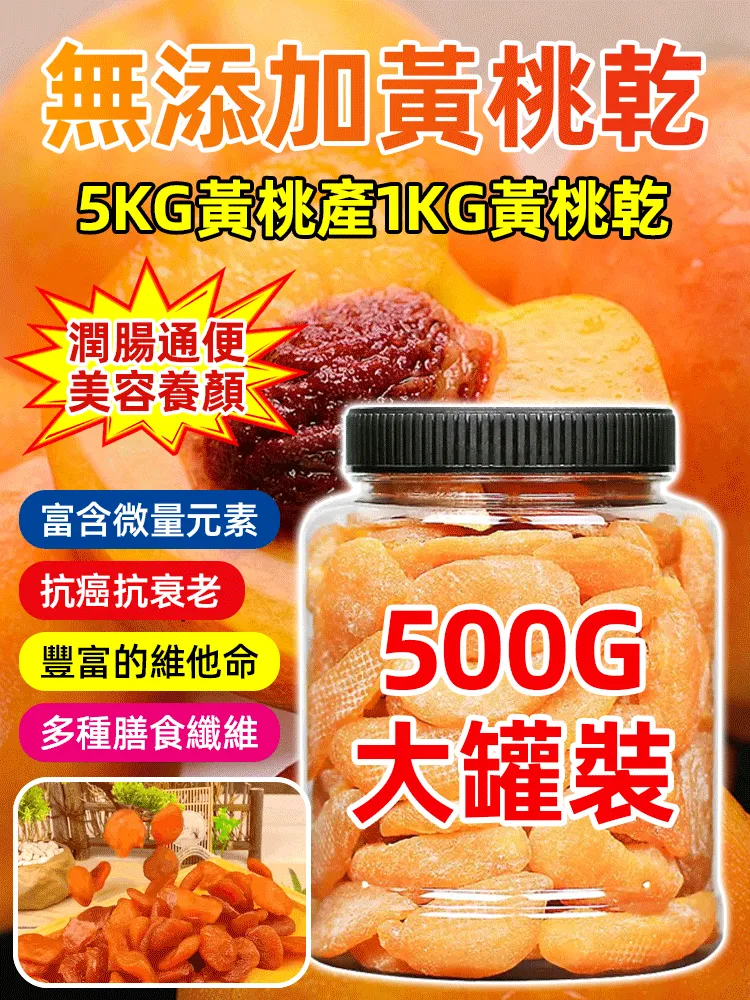 2分鐘前【限定狂促|特優級日曬黃桃果乾】果肉Q彈無添加|古法日晒蜜製 買2罐狂省549元!5KG新鮮黃桃濃縮成1KG精華,富含多種膳食纖維,潤腸通便、營養滿滿、健康加倍! - 【今日限定】一入組 NT$899